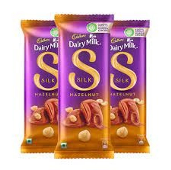 - Cadbury Dairy Milk Silk Hazelnut is made with a glass and a half of milk and offers a delicious combination of milk chocolate & whole Turkish nuts.