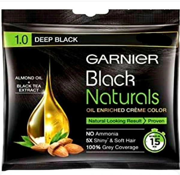 Garnier Black Naturals Oil Enriched Cream Hair Colour - 1.0 Deep Black(20gm+20ml)