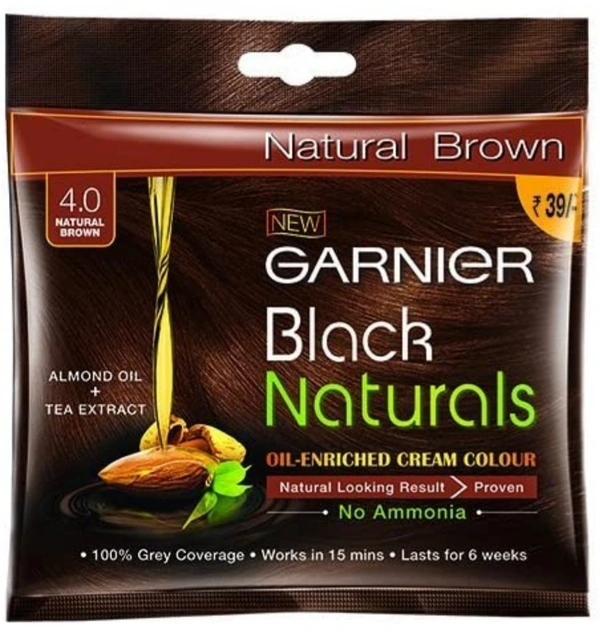Garnier Black Naturals Oil Enriched Cream Hair Colour - 4.0 Natural Brown