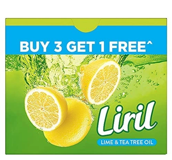 Liril Lime and Tea Tree Oil Soap, Refreshing Bathing Soap With Fragrance & Freshness of Lemon, , 125 g (Buy 3 Get 1)