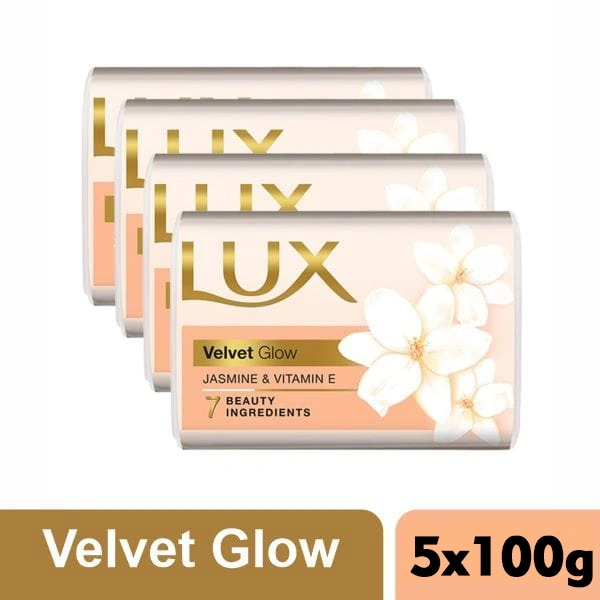 Lux Velvet Glow Bath Soap - Jasmine & Vitamin E, For Glowing Skin, 100gm.(5 Pcs Set)