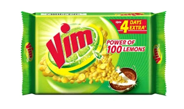 Vim is the No.1 dishwashing brand in India. More than 7 out of 10 Urban Indian Households are regular Vim Dishwash Bar users. With the power of 100 lemons(power refers to the cleaning benefits of lemons), Vim dishwash bar easily removes the toughest of stains. It does wonder in cleaning even in small quantities and provides the fastest removal of burnt food(as per independent lab test conducted on burnt food stains), reducing the overall time and efforts required to clean the utensils. Vim dishwash bar provides a pleasant cleaning experience, as it gives a refreshing lemon fragrance during dishwash. It is the only dishwash bar which comes with a unique plastic coating at the bottom that prevents wastage and sogging, as the coating does not let the bar come in direct contact with water and makes it last longer than ordinary bars. It can safely be used for cleaning all types of utensils like stainless steel, ceramic, non - stick ware, glass etc. Vim dishwash bar is available in different pack formats such as single packs, multipacks and sturdy tub packs. Vim dishwash bar is also available in an Anti-Smell variant. Vimโs Anti Smell range contains 2 in 1 formulation with pudina extract that gives great in-wash freshness and also the degreasing power of lemons.