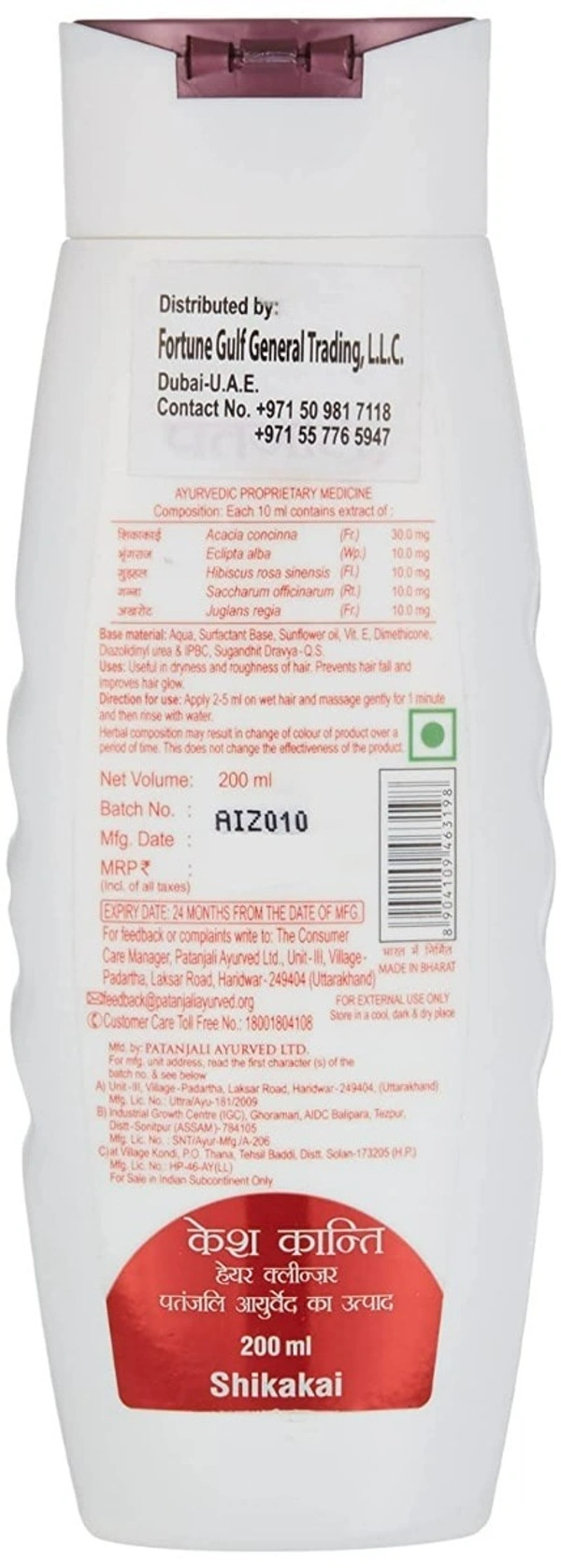 Shikakai, Bhringraj, Hibiscus, Akhrot, Saccharum Officinarum, Aqua, Surfactant Base, Sunflower Oil, Vit E, Dimethicone, Diazolidinyl Urea & Ipbc.