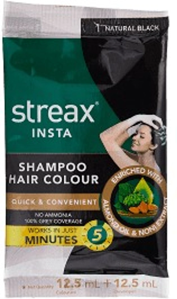 Streax Insta Hair Colour Cream Shampoo, Natural Black, 25ml